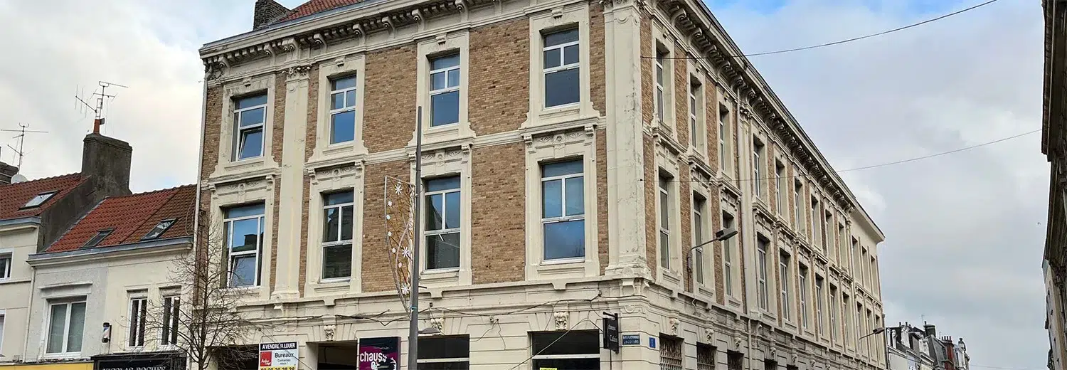 La résidence située 58 boulevard Jacquard s’inscrit en plein cœur de Calais, sur l’un des axes principaux de la ville. Cette opération porte sur la réhabilitation complète d’un immeuble de caractère élevé sur quatre niveaux, comprenant 24 appartements du T1 au T3 répartis sur trois étages, avec conservation d’un local commercial en rez-de-chaussée. L’adresse offre une centralité immédiate, à quelques minutes à pied des commerces, écoles, transports et de la gare.
