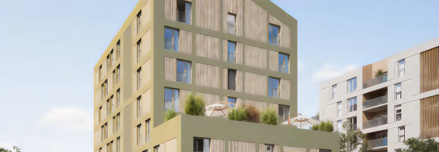 L’écriture architecturale contemporaine dialogue avec une trame verte structurante, pensée comme un véritable fil conducteur paysager. Les appartements, conçus selon des principes bioclimatiques et réalisés avec des matériaux biosourcés, offrent un confort optimal et une sobriété énergétique maîtrisée. Chaque logement dispose d’une cuisine équipée, de rangements intégrés et d’un espace extérieur. Les résidents bénéficient d’espaces partagés, d’un boulodrome et de nombreux services, dont salle de sport, centre médical et commerces de proximité.