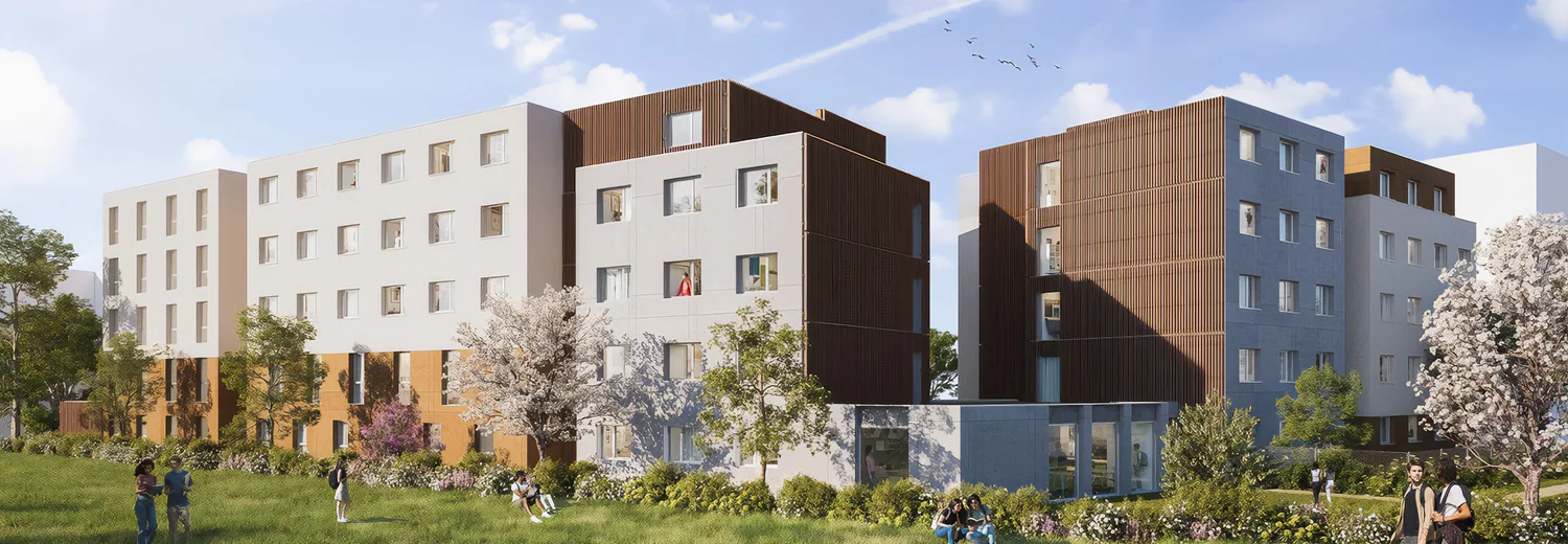 Résidence pensée pour étudiants et jeunes actifs, avec 150 logements du studio au 2 pièces, kitchenette et rangements intégrés.