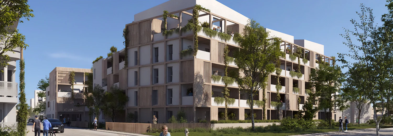 Pensée comme une résidence intimiste, Ôcar se distingue par une architecture contemporaine mêlant bois, béton et végétal, parfaitement intégrée à son environnement. Les appartements, du T2 au T5, en plain-pied ou en duplex, bénéficient tous d’un espace extérieur. Les logements traversants, à double ou triple exposition, privilégient la lumière naturelle avec des pièces de vie majoritairement orientées au sud. Les parties communes accueillent jardins partagés, potagers et micro-forêt, favorisant biodiversité et convivialité, ainsi qu’un stationnement sécurisé en sous-sol accessible par ascenseur.