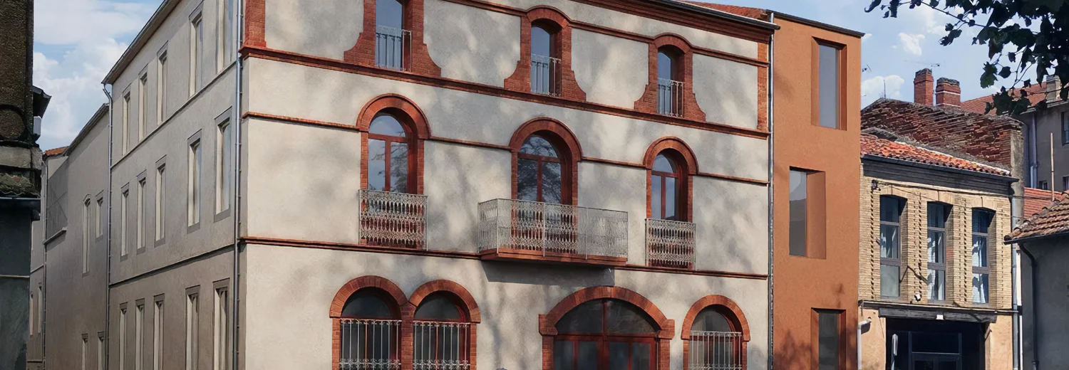 Située en plein cœur historique de Montauban, à deux pas des commerces et des quais du Tarn, la résidence Villa Nova prend place au 57 Grande Rue Villenouvelle et aux 1-3 rue du Château. L’opération porte sur la réhabilitation complète d’un îlot traversant composé de deux bâtiments remarquables et d’une maison attenante, pour un total de 24 logements. L’adresse bénéficie d’une centralité réelle, au sein d’un centre-ville engagé dans une dynamique de rénovation et de redynamisation.